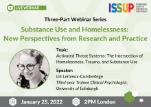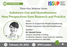 ISSUP would like you to attend the Second Event in the Webinar Series on Substance Use and Homelessness: New Perspectives from Research and Practice.