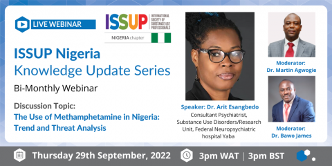 ISSUP Nigeria vorrebbe invitarvi al loro prossimo webinar bimestrale nella serie di aggiornamenti della conoscenza. Questo webinar sarà incentrato su "L'uso della metanfetamina in Nigeria: analisi delle tendenze e delle minacce".