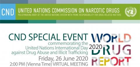 La 63a CND terrà un evento virtuale speciale per commemorare la Giornata internazionale delle Nazioni Unite contro l'abuso e il traffico illecito di droghe, tra cui il lancio del World Drug Report 2020 e seguito da una discussione sull'impatto del COVID-19 sulla situazione mondiale della droga.
