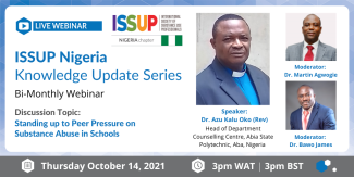 ISSUP Nigeria are pleased to present the next Bi-Monthly Webinar in their Knowledge Update Series. This Webinar will focus on Standing up to Peer Pressure on Substance Abuse in Schools.
