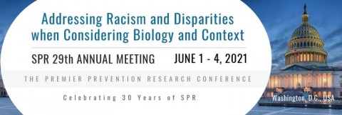Mark your calendars to attend the most important prevention science conference–the Society for Prevention Research (SPR) 29thAnnual Meeting that will be held June 1-4, 2021. This year’s theme is “Addressing Racism and Disparities when Considering Biology and Context.”