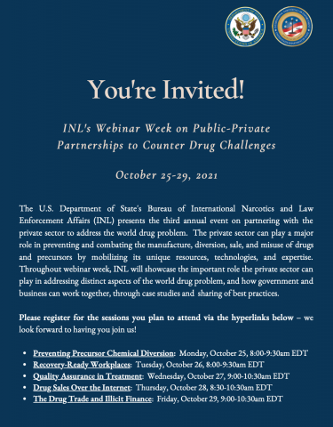 The U.S. Department of State's Bureau of International Narcotics and Law Enforcement Affairs (INL) presents the third annual event on partnering with the private sector to address the world drug problem.